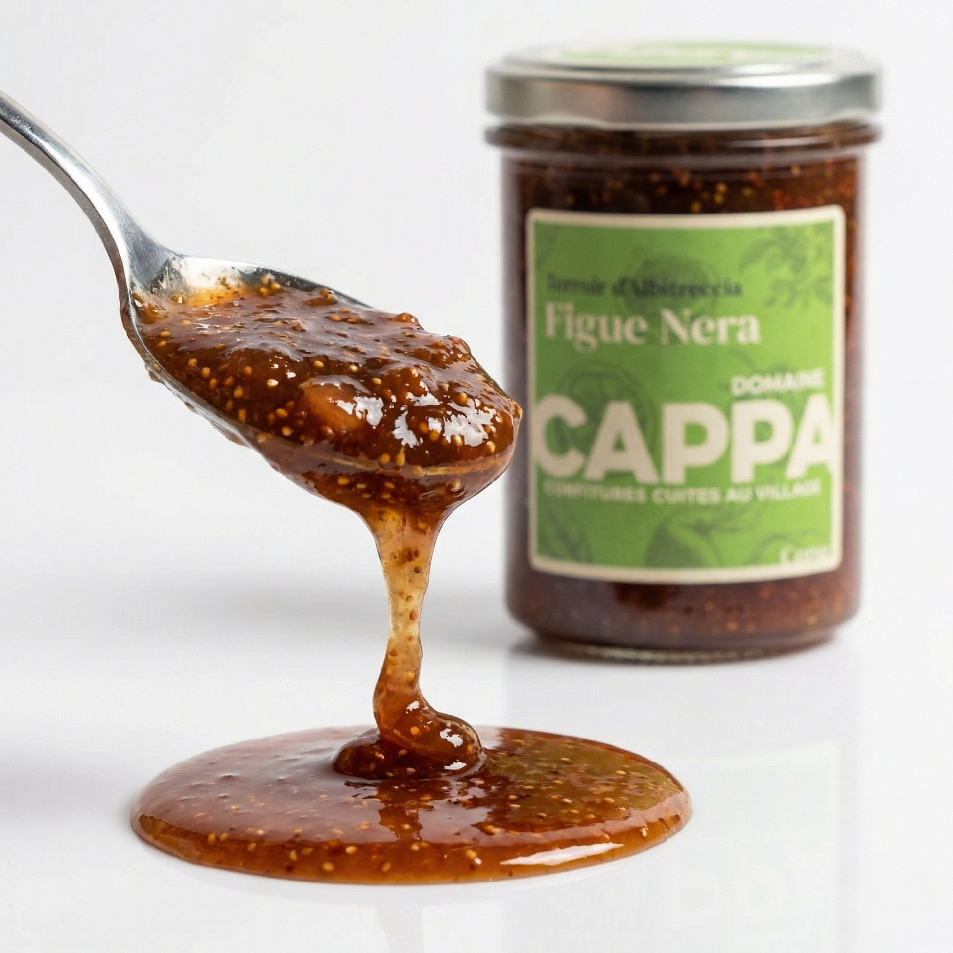 Confiture Figue Nera — une confiture corse gourmande, préparée avec soin par Le Domaine Cappa, la Figue Nera offre une texture généreuse et des saveurs intenses, typiques du terroir corse.